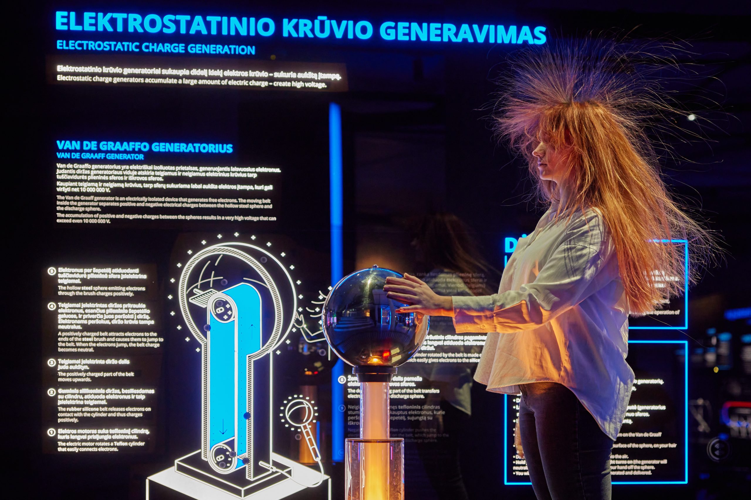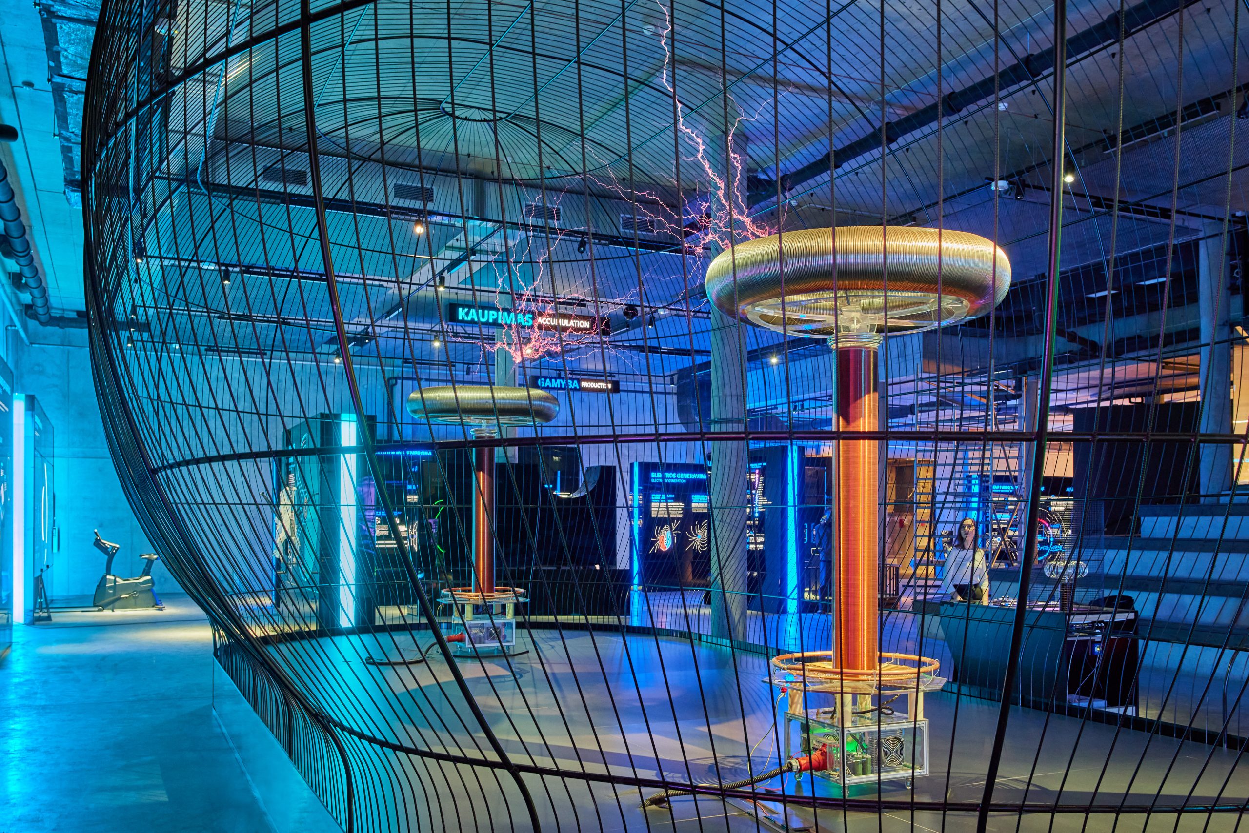 Ekspozicijos centre – išskirtiniai eksponatai: viena mažoji ir dvi didžiosios Tesla ritės. 1891 m. išradimą sukūrė serbų kilmės inžinierius Nikola Tesla. „Gyvename laikais, kai klimato ir geopolitiniai iššūkiai verčia mus mažinti CO2 emisijas, ieškoti alternatyvių kuro šaltinių, efektyviau panaudoti turimus resursus ir tobulinti esamas technologijas. Šiuos iššūkius spręs mūsų ir ateities kartos. O N. Teslos idėjos pralenkė laiką ir dar šiandien yra aktualios. Tad norime lankytojui, ypač jaunam, pasakyti: svajok plačiai, nes ir vienas žmogus gali nuveikti labai daug“, – sakė M. Bistrickas.